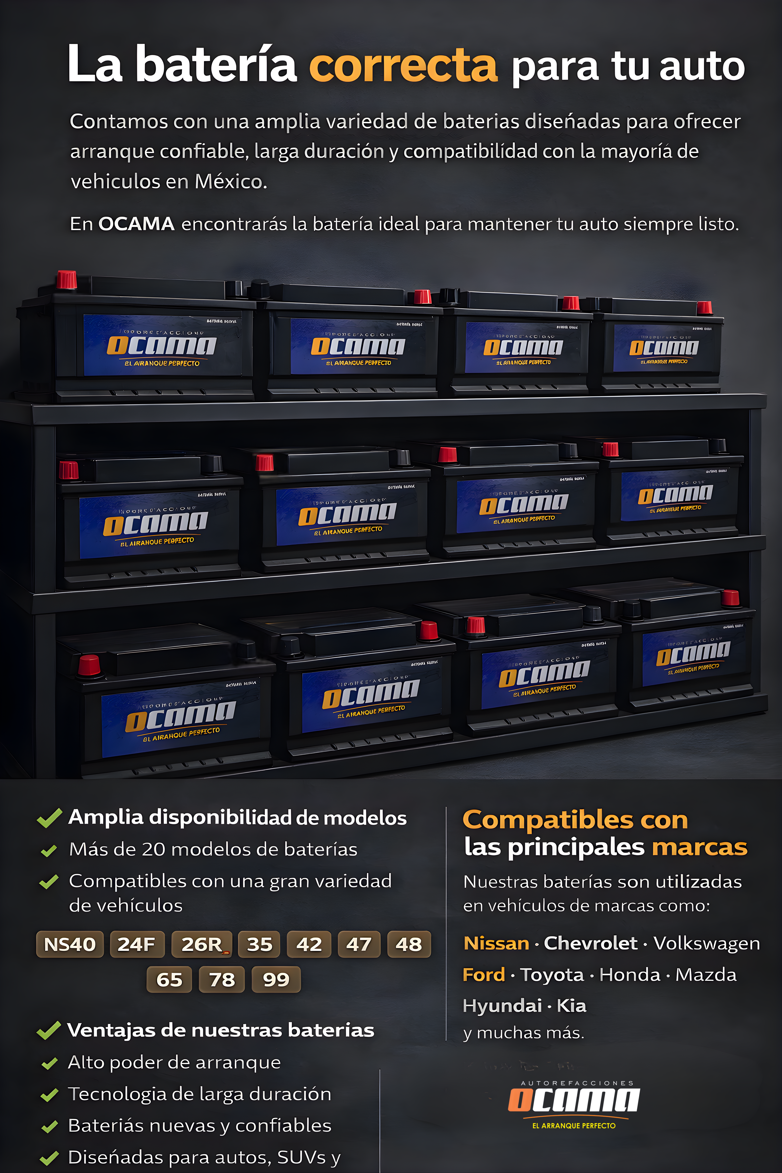 Para saber qué tipo de batería necesita tu auto, puedes consultar nuestro Catálogo de Compatibilidades donde encontrarás la opción adecuada según la marca, modelo y año de tu vehículo.